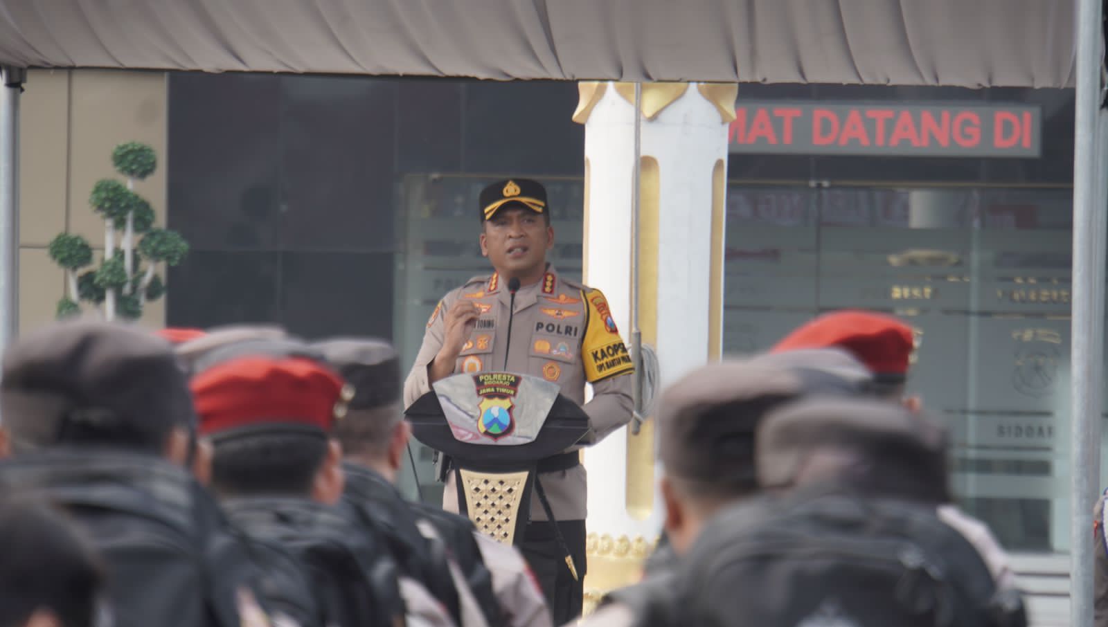 Dalam arahannya, Kapolresta menyampaikan bahwa ribuan personel ini berasal dari Polresta Sidoarjo dan jajaran Polsek di wilayah hukum Sidoarjo. Mereka bertugas untuk menjamin keamanan selama proses pemungutan hingga penghitungan suara.