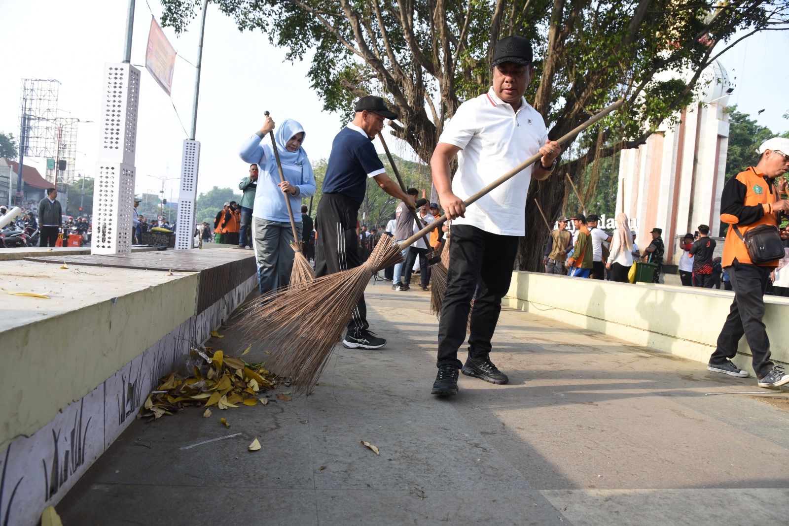 KabarBaik.co – Sebanyak 15 ribu Aparatur Sipil Negara (ASN) di Sidoarjo dikerahkan dalam kegiatan Geber Sidoarjo (Gerakan Bersih Sidoarjo) pada Jumat pagi (4/10). Aksi kerja bakti massal tersebut dilakukan serentak di seluruh sudut kota, mulai dari pusat kota hingga kecamatan, desa, kelurahan, sekolah, hingga badan usaha. Pjs. Bupati Sidoarjo, Muhammad Isa Anshori, memimpin langsung aksi tersebut dengan turut membersihkan area pedestrian di Alun-alun Sidoarjo.