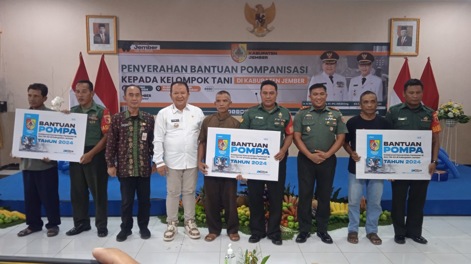KabarBaik.co – Kementerian Pertanian Republik Indonesia bersama TNI AD menyerahkan bantuan pompa air kepada 28 Kelompok Tani (Poktan) di Kabupaten Jember, kamis (9/5).