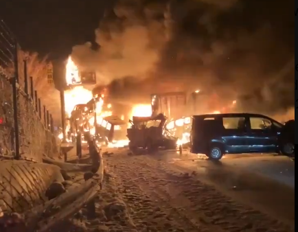 Kecelakaan itu terjadi di lajur keluar Tol Kan-etsu di Minakami pada Jumat (26/12) sekitar pukul 19.30 waktu setempat. Diduga, kendaraan-kendaraan itu tergelincir di permukaan jalan yang licin akibat es saat salju turun.