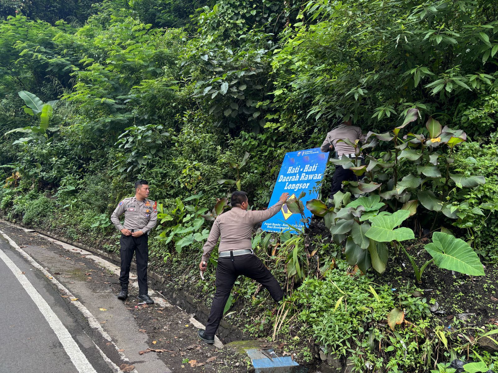 Antisipasi Musibah di Jalur Wisata, Satlantas Polres Pasuruan Pasang Himbauan Bagi Pengguna Jalan