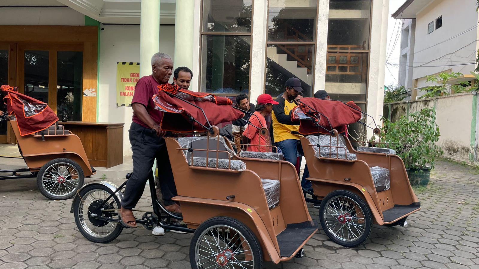 Meski demikian, para tukang becak ini mengaku bersyukur dengan hadirnya bantuan becak listrik tersebut. Bagi mereka bantuan ini berpeluang meningkatkan kesejahteraan para tukang becak.