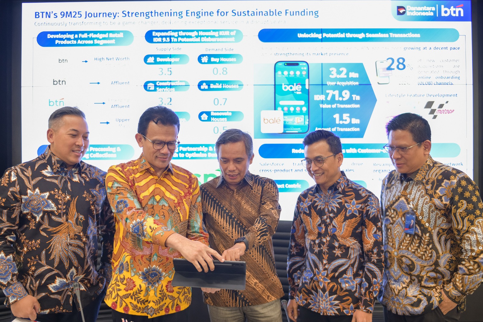 Pada kuartal III/2025, BTN berhasil membukukan laba bersih sebesar Rp 2,3 triliun, bertumbuh double-digit sebesar 10,6 persen secara tahunan (yoy) dibandingkan periode yang sama tahun lalu sebesar Rp 2,08 triliun. Kredit dan pembiayaan BTN pun tercatat tumbuh positif sebesar 7,0 persen yoy menjadi Rp 381,03 triliun hingga kuartal III/2025. Meningkatnya kepercayaan masyarakat bertransaksi lewat BTN juga mendongkrak pertumbuhan DPK yang mencapai 16,0 persen yoy hingga kuartal III/2025, menjadi Rp 429,92 triliun, dari posisi yang sama tahun lalu sebesar Rp 370,75 triliun.