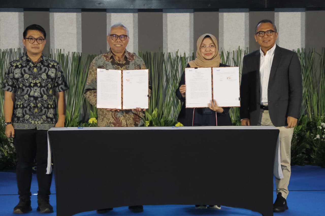 Dalam acara tersebut, Human Capital Management Division Head BTN Rahmayati (dua dari kanan) dan Wakil Rektor Bidang Akademik Universitas Indonesia (UI) Prof. Ir. Mahmud Sudibandriyo, M.Sc., Ph.D (dua dari kiri) menandatangani perjanjian kerja sama Program Beasiswa Ikatan Dinas BTN (Pre-Graduate).