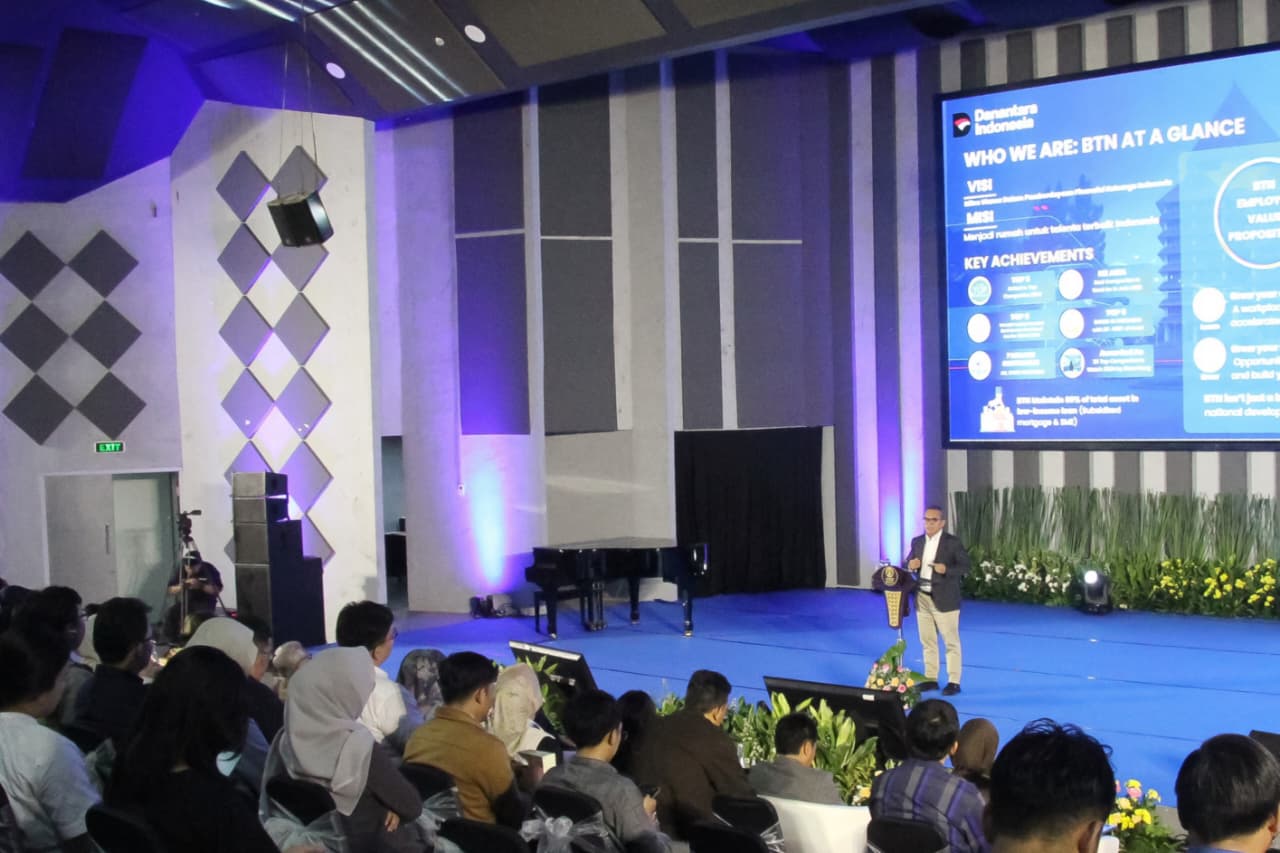 Direktur Human Capital & Compliance BTN Eko Waluyo menjadi keynote speaker dalam BTN Inspire Corner Universitas Indonesia di Auditorium Pusgiwa Universitas Indonesia (UI), Depok, Jawa Barat, Jumat (12/12). Eko menekankan pentingnya pengembangan skill dan mindset bagi para pemimpin muda agar dapat menjadi bankers professional yang mampu mengoptimalkan manfaat teknologi terkini di era AI.