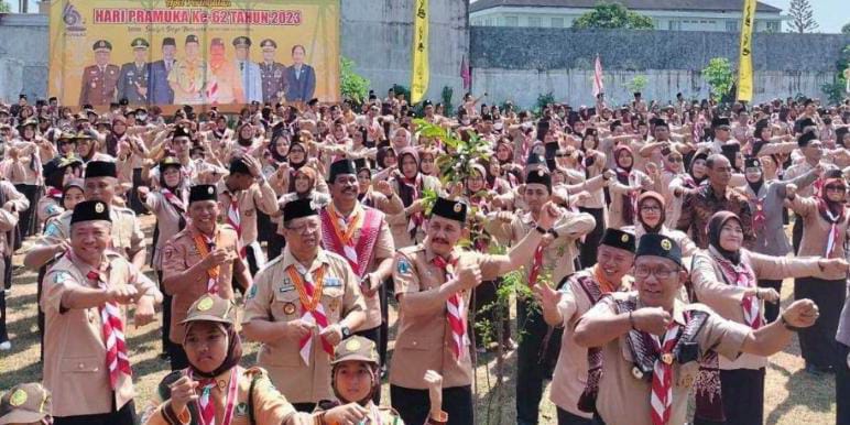 Dalam sambutannya, Maryoto mengaku bahagia dan bersyukur dengan usia Pramuka yang sudah ada di angka 62 tahun