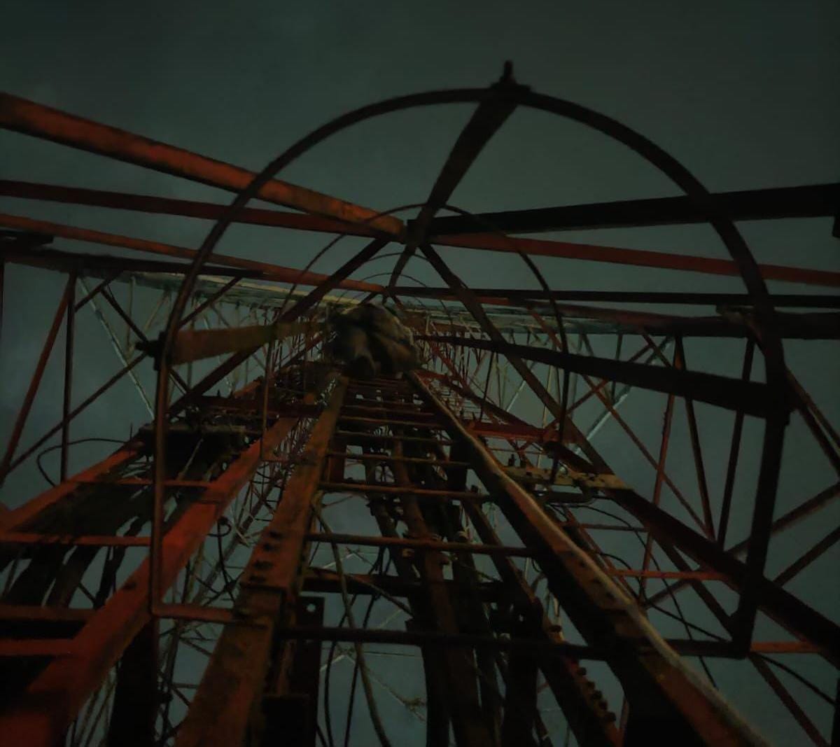 Karena jaraknya yang terlalu tinggi, mereka yang berada di bawah tower kesulitan berkomunikasi. Akhirnya dua petugas damkar, yakni Ribut Hendri Satria dan M Rifa’i memutuskan untuk naik menyusul NAA.