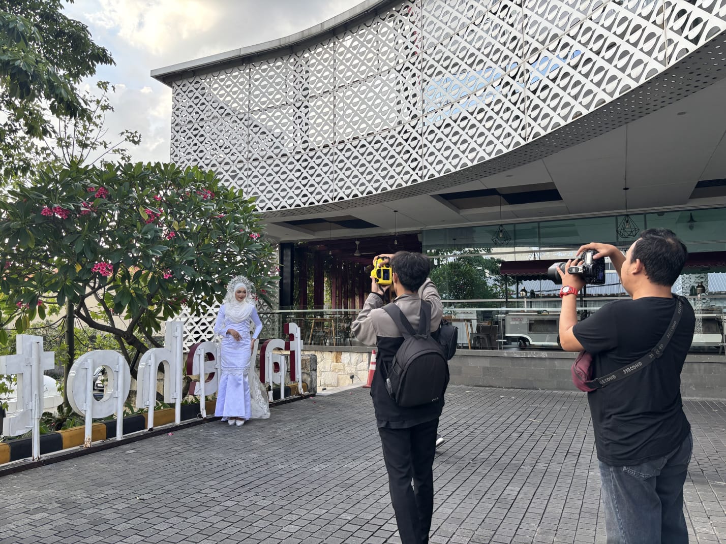 Begitu datang, mereka tak langsung buru-buru mengangkat kamera. Ada perkenalan, obrolan hangat, dan saling sapa. Tapi ketika tiga model muncul mengenakan busana pengantin tradisional bernuansa modern, semua mata langsung tertuju. Kamera terangkat, kreativitas pun mengalir.