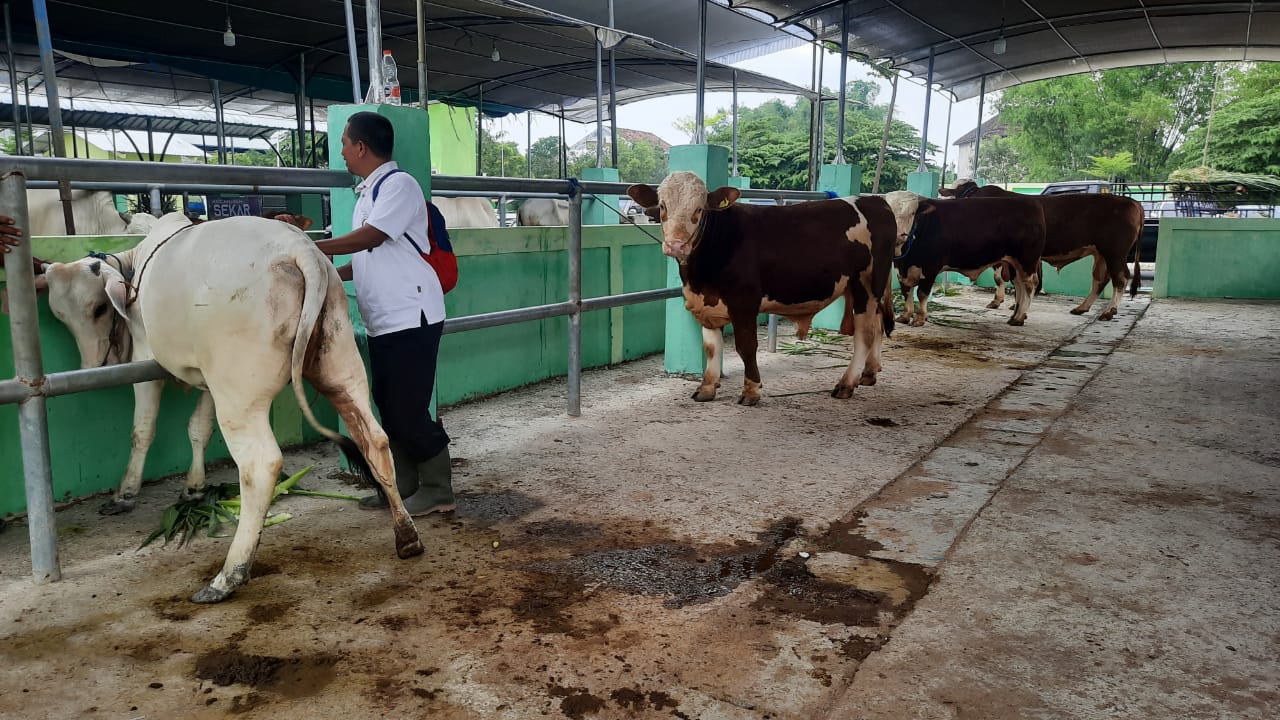 Mantri hewan melakukan pengecekan ke sejumlah sapi milik peternak di Kabupaten Pasuruan. (Foto: Shohibul Umam)