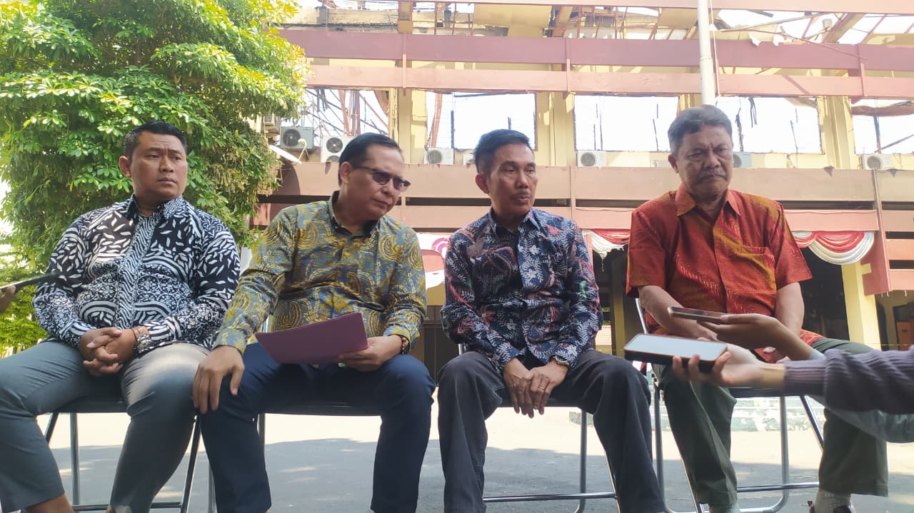 Ketua DPRD Kabupaten Kediri, Murdi Hantoro, bersama Wakil Ketua I Sentot Djamaluddin, Wakil Ketua II Ketut Gutomo, dan Wakil Ketua III Sigit Sosiawan menyampaikan sikap resmi lembaga legislatif tersebut melalui konferensi pers, Senin (1/9).