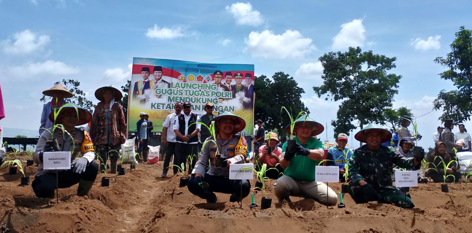 Langkah awal dari dukungan tersebut yaitu dengan menanam bibit jagung di area lahan tidur yang digarap menjadi produktif di wilayah Jalibar, Desa Oro-oro Ombo, Kecamatan/Kota Batu. Kegiatan itu juga dilaksanakan secara serentak melalui zoom dengan seluruh polres di Indonesia yang dilaunching langsung Kapolri Jenderal Polisi Listyo Sigit Prabowo.