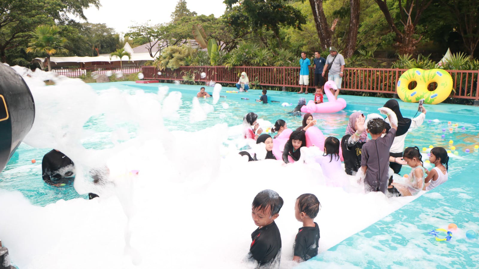 Foam party di Safari Water World adalah acara seru yang membawa kesenangan bermain air ke level yang lebih tinggi. Bayangkan, kolam renang yang dipenuhi dengan busa melimpah, menciptakan suasana penuh kegembiraan bagi seluruh keluarga. Diiringi musik upbeat dan permainan interaktif, pengunjung dapat menikmati sensasi berenang sambil bermain dengan busa yang lembut dan menyegarkan.