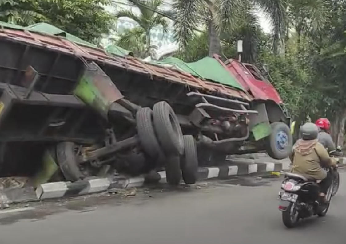 Bodi truk pun ambruk hampir mengenai pagar Masjid Agung Gresik. Beruntung tidak ada korban jiwa dalam peristiwa ini.