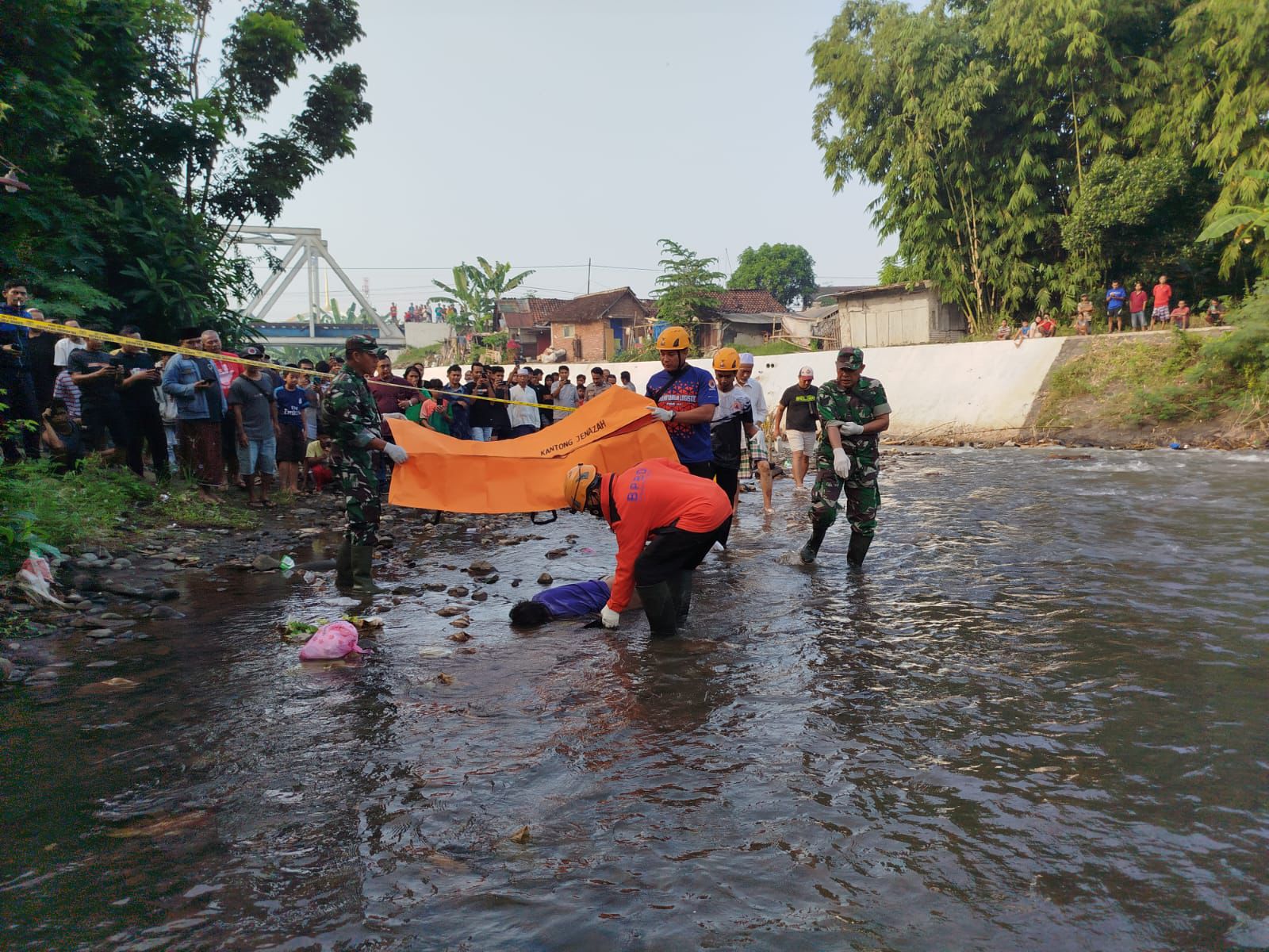 “Jadi setelah melihat mayat tersebut, warga langsung lapor ke saya dan memberitahukan bahwa ada mayat dengan jenis kelamin laki-laki, di sungai,” jelas Andre.