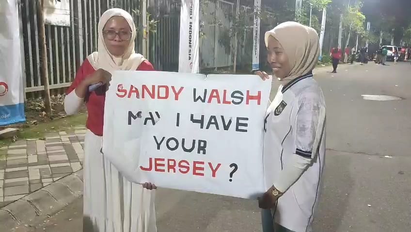 Tak hanya bermodalkan nekat, Iin juga sudah menyiapkan strategi. Ia membawa tulisan khusus bertuliskan, “Sandy May I Have Your Jersey.” Pesan itu berhasil menarik perhatian Walsh. Usai laga, pemain naturalisasi itu melemparkan jerseynya ke arah tribun.
