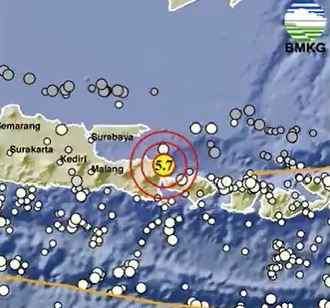 KabarBaik – Gempa dengan kekuatan Magnitudo 5,7 mengguncang Banyuwangi. Gempa ini mengguncang pada pukul 16.04 WIB.
