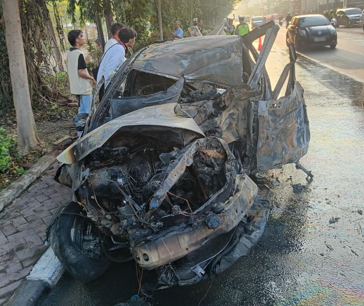KabarBaik.co – Kecelakaan tragis terjadi di Jalan Manyar Kertoarjo, Surabaya, Rabu (15/10) dini hari sekitar pukul 04.00 WIB. Sebuah mobil Honda Jazz bernomor polisi L 1361 CBD menabrak tiga pohon di pulau jalan sebelum terbakar hebat. Dua orang tewas di lokasi, sementara satu penumpang perempuan berhasil selamat.