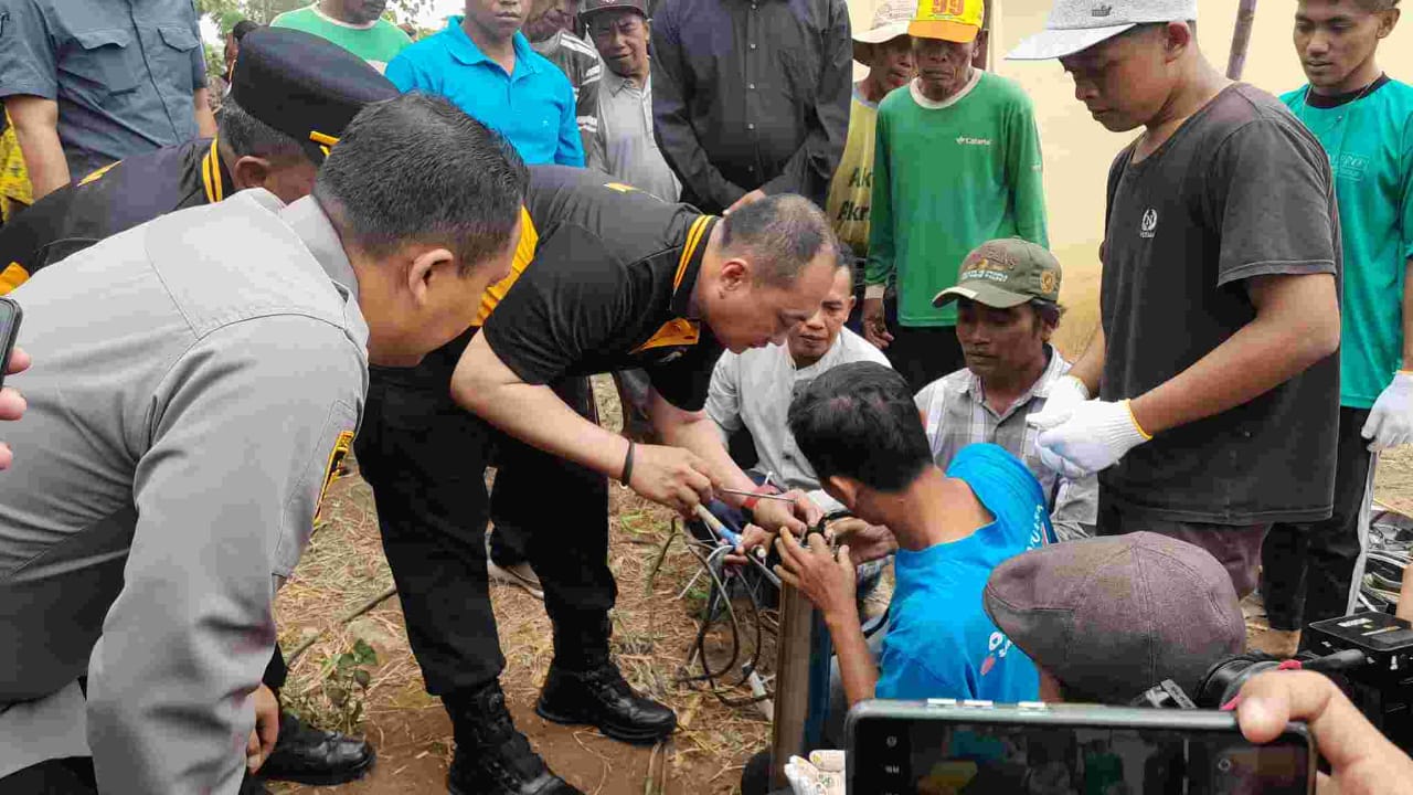 Kapolresta Banyuwangi, Kombespol Nanang Haryono datang langsung memantau pemasangan instrumen sumur bor di lokasi, Kamis (13/6).