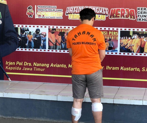 “Kami mengamankan pelaku seorang diri di kamar kos wilayah Surabaya Barat, tepatnya di Kecamatan Lakarsantri,” ujar Kasat Reskrim Polres Mojokerto AKP Fauzy Pratama.