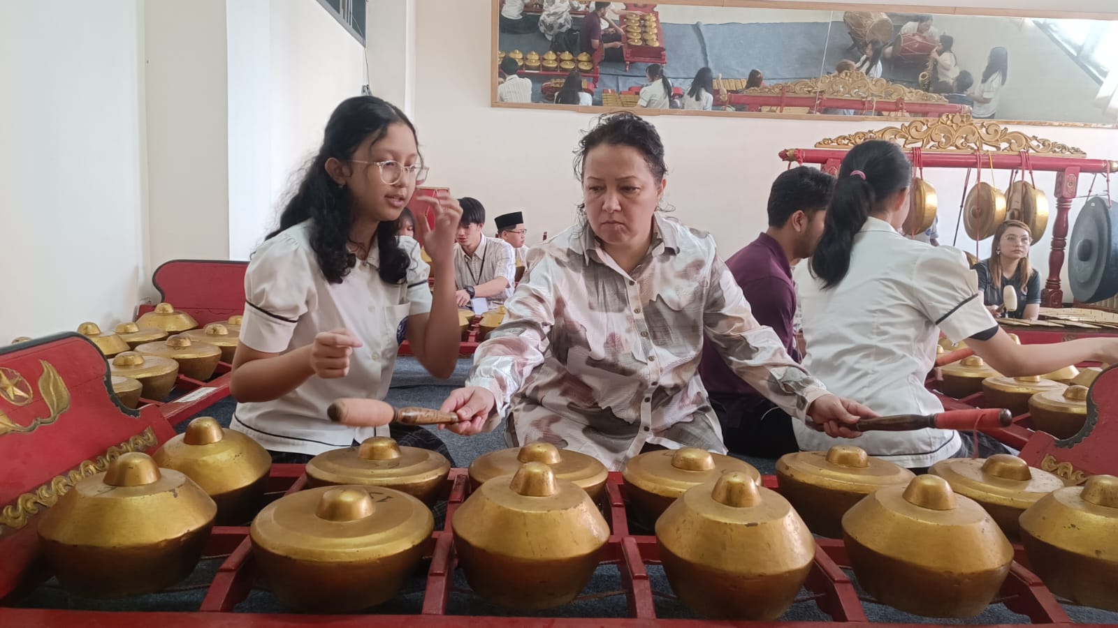 Setelah pertunjukan, peserta dibagi ke dalam beberapa kelompok untuk belajar memainkan alat musik tradisional Indonesia, yakni Kulintang, Gamelan, dan Angklung. Tahun ini, program budaya di NSA semakin istimewa karena selain memainkan alat musik, para peserta juga berkesempatan mempelajari Tari Gelang Ro’om yang khas dari Madura.