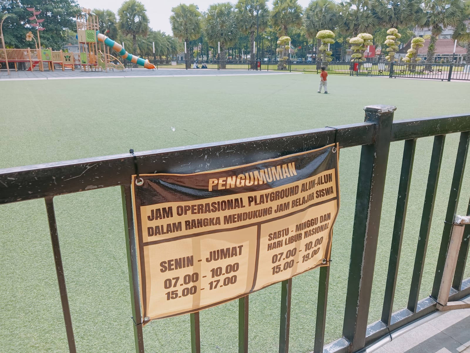Papan pengumuman yang terpasang di lokasi mencantumkan jadwal operasional sebagai berikut: