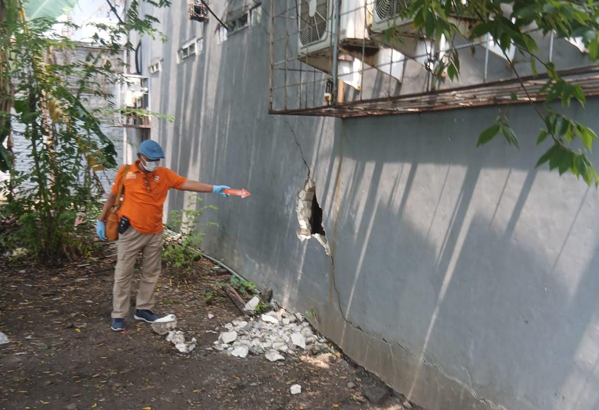 Dari hasil penyelidikan awal, pelaku diduga berjumlah dua orang. Mereka menembus bangunan melalui tembok belakang yang dirusak menggunakan alat keras semacam palu gada dan linggis.