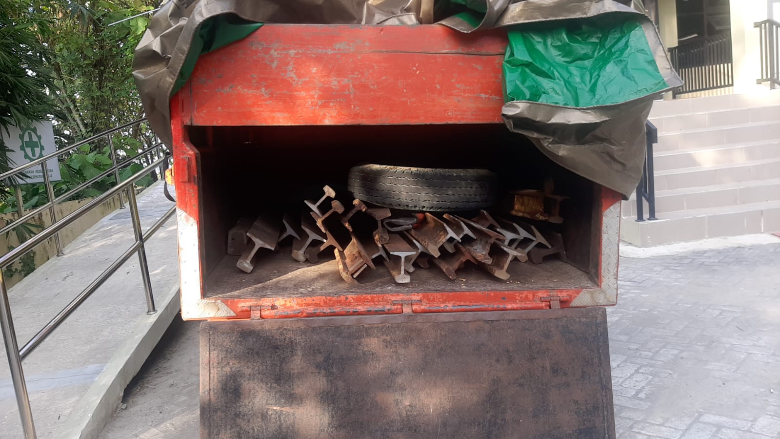 Dari lokasi kejadian, polisi mengamankan sejumlah barang bukti berupa satu unit truk dengan nomor polisi K-8720-ES, tali tampar sepanjang dua meter, empat botol plastik, sebuah tas berwarna ungu, empat balok kayu sepanjang 50 centimeter, tiga buah gergaji besi, delapan batang rel ukuran 54, serta 18 batang rel ukuran 38.
