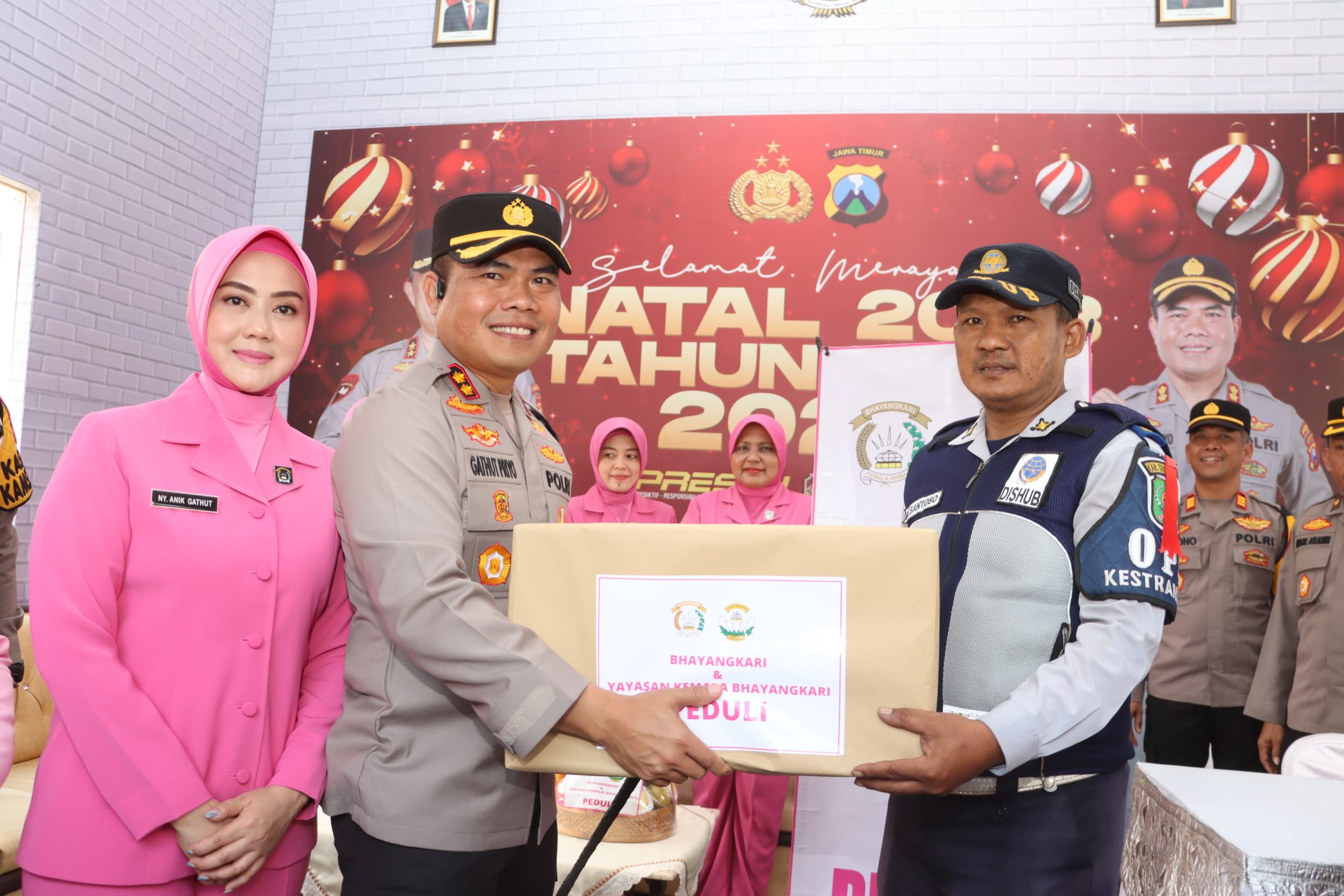 Bukan itu saja, Kapolres dan Ibu Ketua Cabang Bhayangkari juga menyerahkan bingkisan kepada para petugas sebagai wujud penghargaan dan kepedulian atas dedikasi dan integritasnya dalam menjaga dan mengamankan Nataru di Kabupaten Trenggalek tetap kondusif.