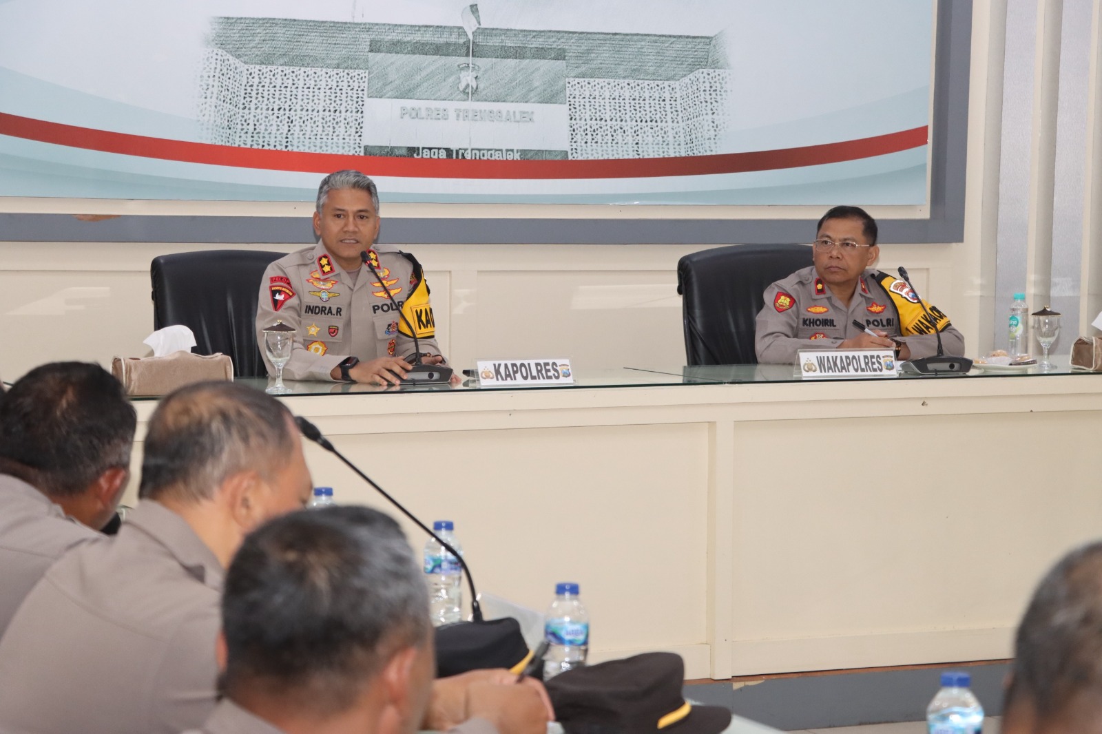 KabarBaik.co – Memasuki minggu pertama kepemimpinannya, Kapolres Trenggalek yang baru, AKBP Indra Ranu Dikarta langsung tancap gas melakukan konsolidasi internal. Acara yang digelar di Rupatama Mapolres ini diikuti oleh seluruh pejabat utama, perwira staf, dan Kapolsek jajaran.