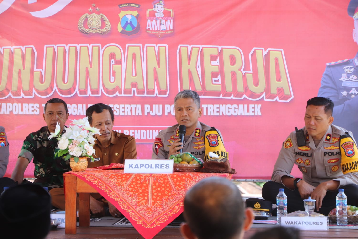 KabarBaik.co – Kapolres Trenggalek AKBP Indra Ranu Dikarta melakukan kunjungan kerja ke Mapolsek Bendungan untuk memantau situasi keamanan dan ketertiban masyarakat (kamtibmas). Selain bertemu dengan anggota kepolisian, Kapolres juga bersilaturahmi dengan tokoh masyarakat setempat.
