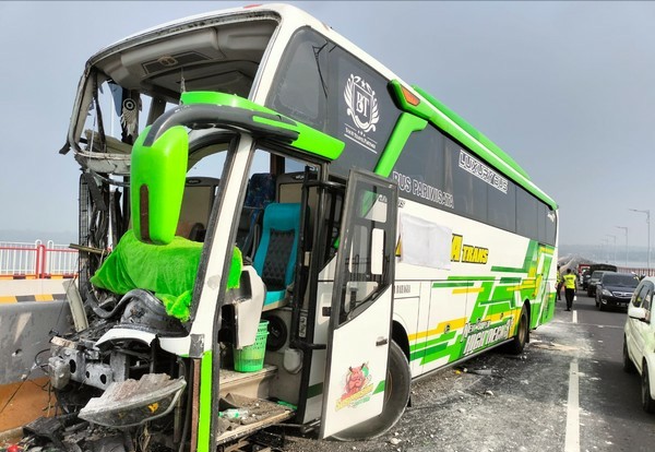 kabarbaik.link – Kecelakaan maut terjadi di Jembatan Suramadu sisi Madura pada Sabtu (24/2/2024) pagi. Sebuah bus dengan nopol S 7910 US yang dikendarai oleh HR (35), warga Kediri, menabrak bagian belakang truk N 9821 UW yang dikemudikan oleh AD (25), warga Kediri.