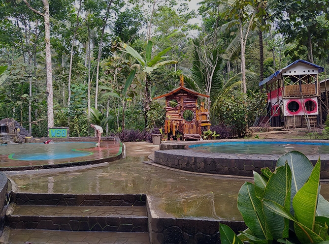 Kamu akan merasakan sensasi berenang di air yang segar dan menyejukkan di tengah hutan yang asri.