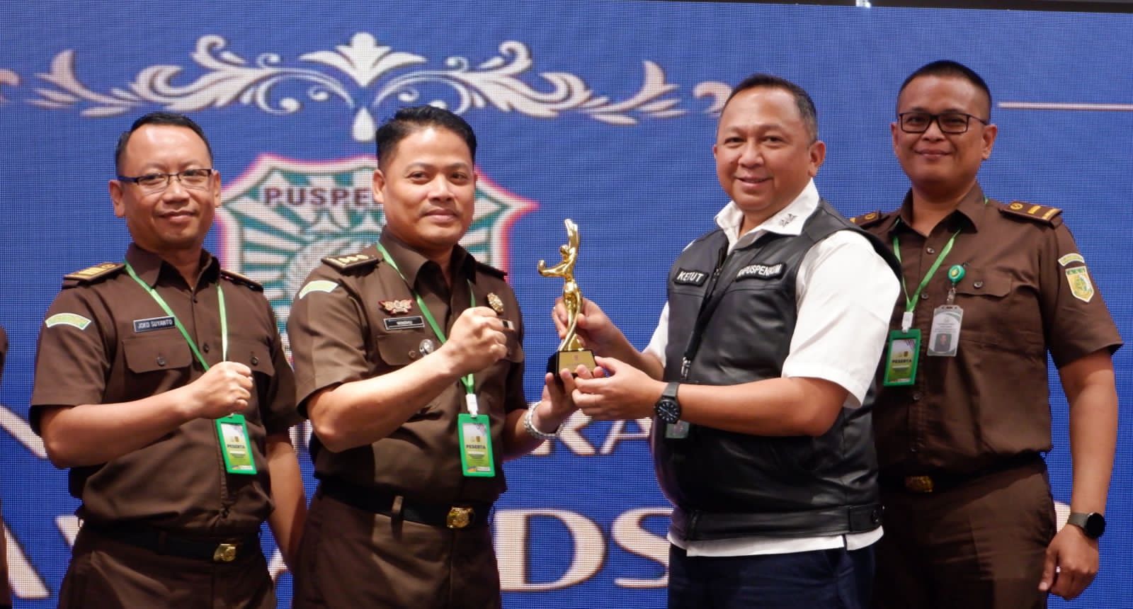 Penghargaan tersebut diberikan oleh Kepala Pusat Penerangan Hukum (Kapuspenkum) Kejaksaan Agung Republik Indonesia (Kejagung RI) Dr. Ketut Sumedana kepada Kepala Seksi Penerangan Hukum (Kasi Penkum) Kejati Jatim Windhu Sugiarto SH MH pada acara Workshop Penguatan Peran Tenaga Humas Kejaksaan dalam Rangka Meningkatkan Kepercayaan Masyarakat, di Mercure Hotel Jakarta, Kamis (9/11/2023).