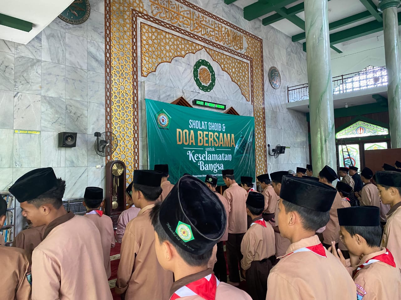 Kegiatan digelar usai salat Zuhur berjamaah di masjid induk pesantren, Minggu (31/8). Salat gaib tersebut dipimpin langsung oleh Pengasuh Ponpes Mambaul Ma’arif, KH Abdussalam Shohib atau yang akrab disapa Gus Salam.