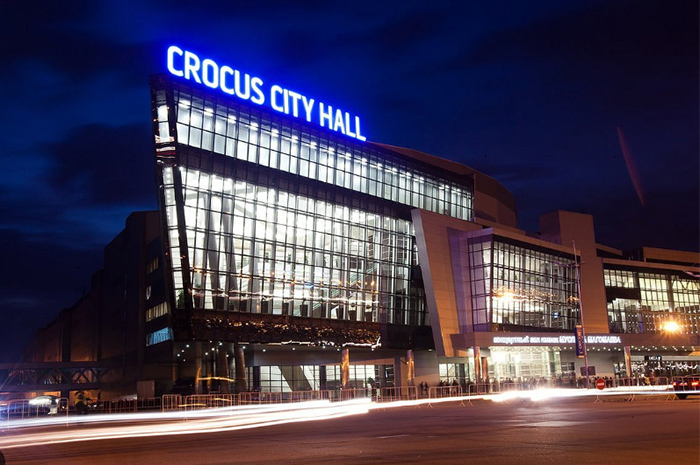 Crocus City Hall resmi dibuka 25 Oktober 2009. Milik pengusaha terkenal Aras Agalarov. Kabarnya, gedung dibangun untuk menghormati temannya, Muslim Magomayev, penyanyi dan musisi hebat.