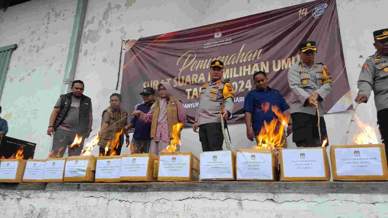 Pemusnahan dilakukan oleh Komisioner KPU Banyuwangi bersama dengan jajaran pejabat Polresta Banyuwangi.