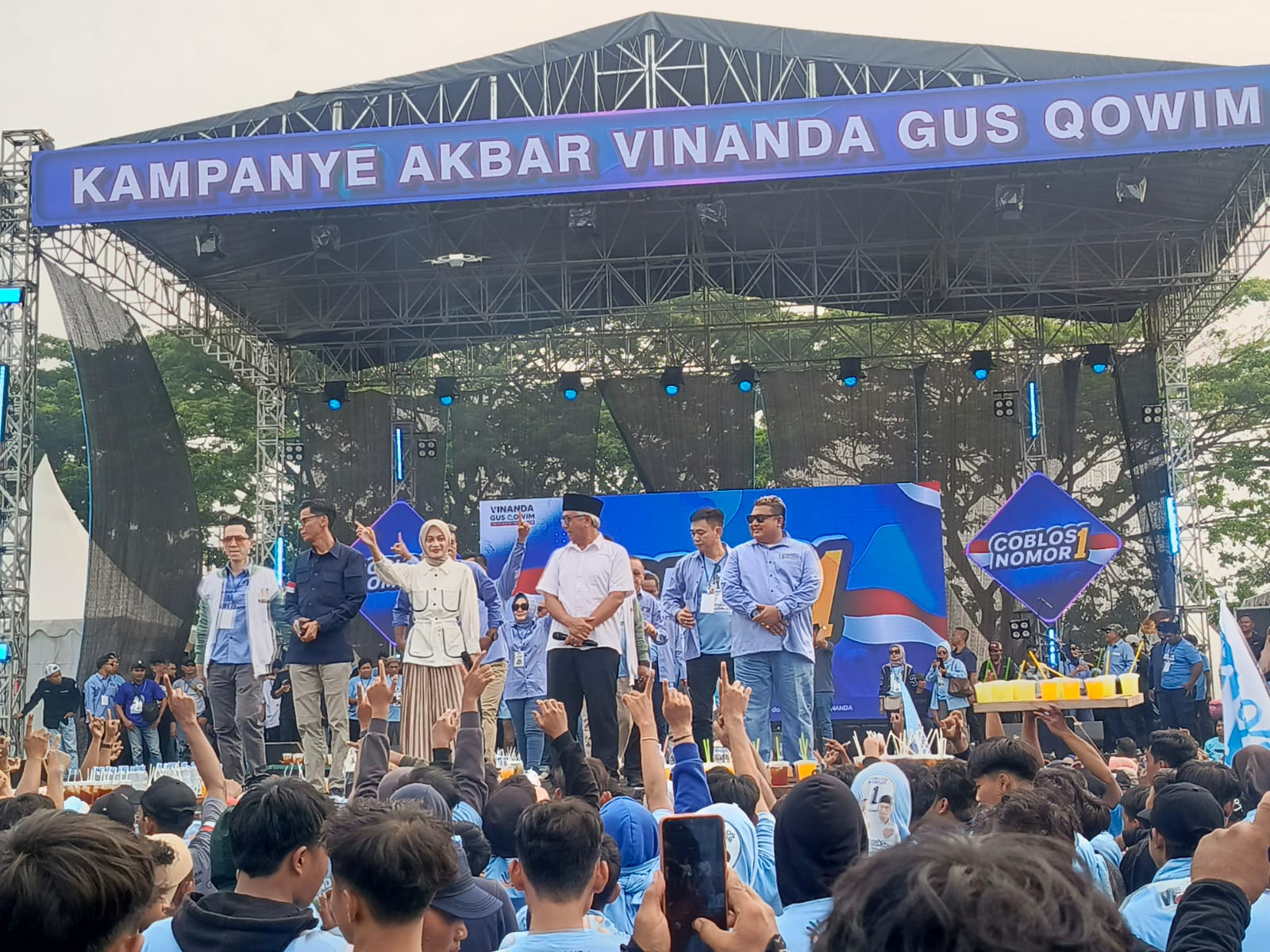 Mbak Vinanda – Gus Qowim, bahkan turut melantunkan lagu Rumah Kita, yang menjadi penutup rangkaian Kampanye Akbar bertajuk ‘Satu Untuk Semua, Semua Untuk Satu’ itu. Diikuti 21 anggota DPRD Kota Kediri dari partai pengusung dan tim pemenangan pasangan calon wali kota dan Wakil Wali Kota Kediri nomor urut 1 tersebut.