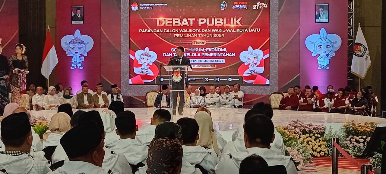 “Sebentar lagi masuk masa tenang, dimana nanti bersama satpol PP kita akan menertibkan alat peraga dari paslon, baik nomor 1, 2, dan 3,” kata Ketua KPU Kota Batu, Heru Joko Purwanto di hadapan tiga paslon Pilkada Kota Batu dan 75 pendukung masing-masing paslon saat debat publik di Hotel Kota Batu, Kamis malam (21/11).