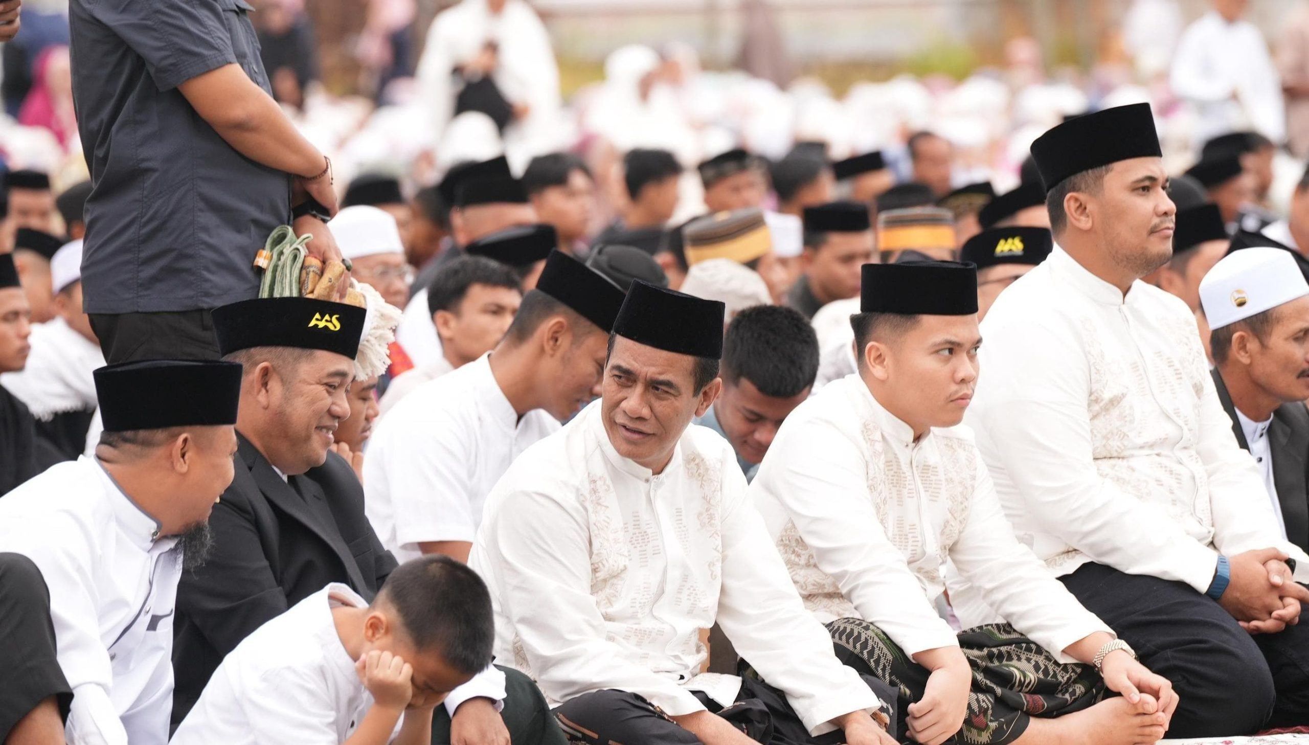 Menteri Pertanian Andi Amran Sulaiman sendiri melaksanakan salat Idul Fitri di lapangan mini soccer Dusun Bakunge, Desa Mappesangka, Bone, Sulawesi Selatan.