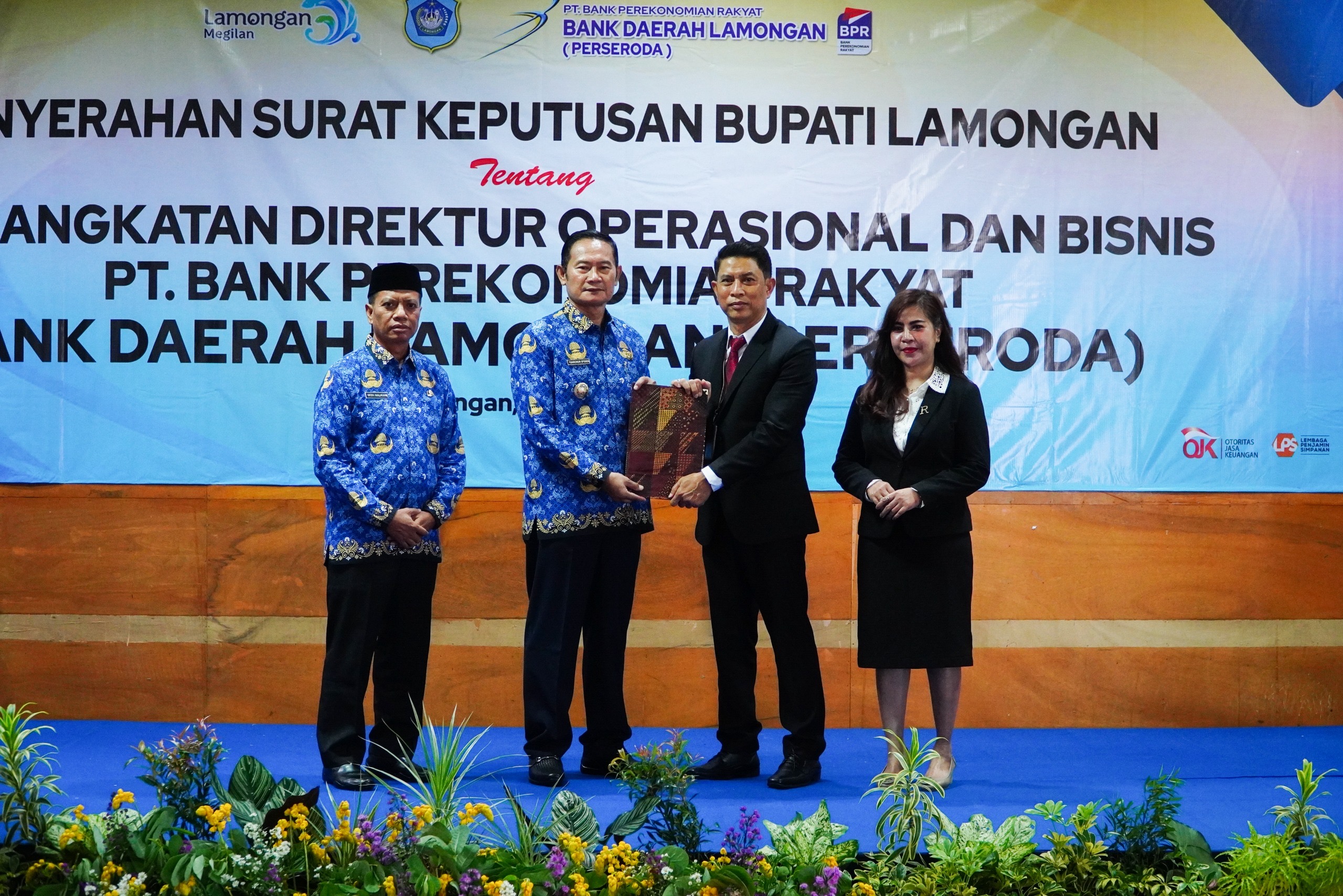 KabarBaik.co – Bupati Lamongan Yuhronur Efendi serahkan surat keputusan (SK) Bupati Lamongan kepada Dedy Rachmadi Wibowo sebagai Direktur Operasional dan Bisnis PT. Bank Perekonomian Rakyat Bank Daerah Lamongan (BDL), di Aula Bank Daerah Lamongan, Kamis (17/4).