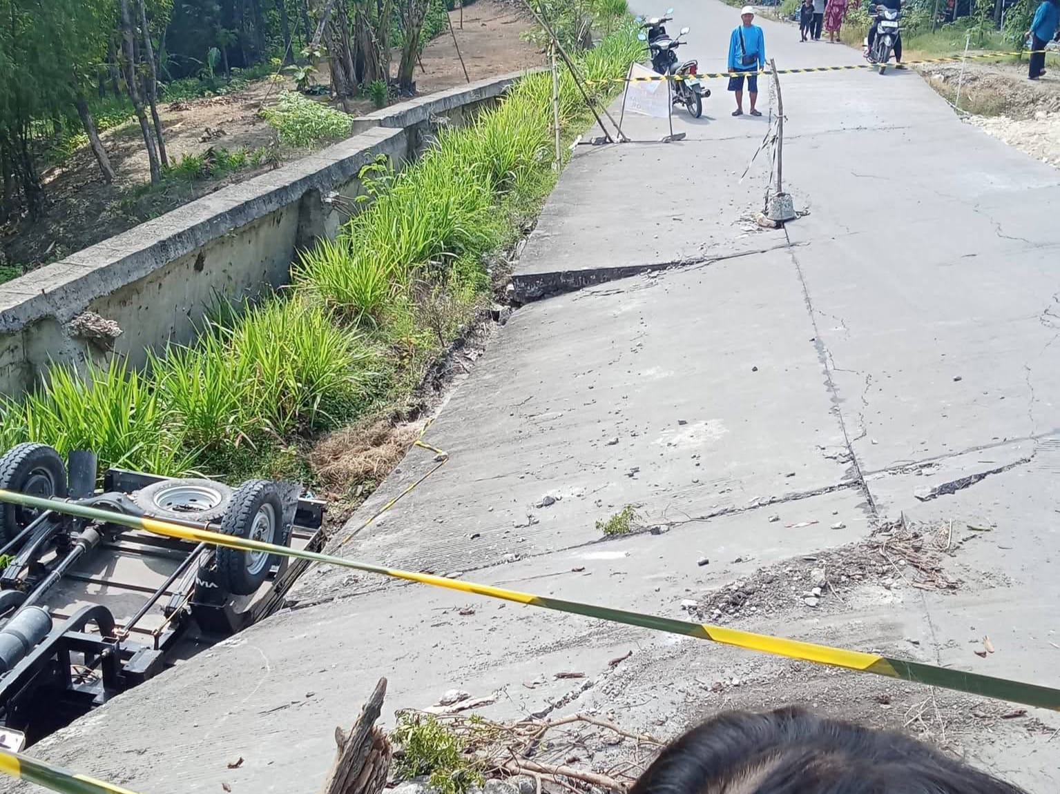 Ia menyebut, selain bagian jalan yang ambles, kondisi badan jalan di sekitarnya turut bergelombang akibat perubahan struktur tanah di bawah bangunan jalan. “Sebenarnya jalan tersebut sejak satu bulan lalu sudah tidak bisa dilalui kendaraan roda tiga maupun empat, makanya kita sudah pasang garis pembatas agar mencegah terjadinya kecelakaan,” ujar Sulibianto.