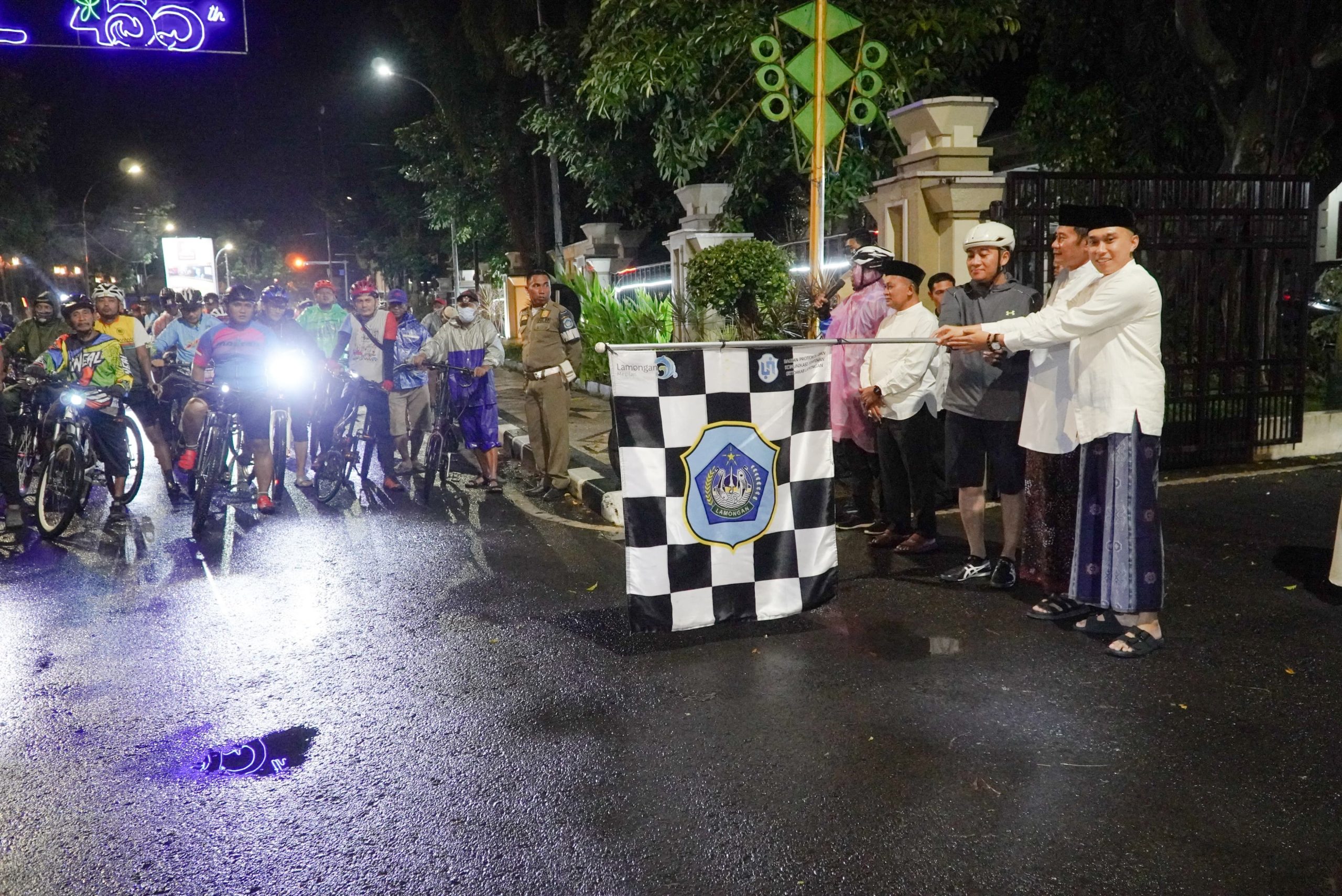 Mengenakan mountain bike (MBT), yang dilengkapi keselamat berkendara seperti helm, lampu, hingga jas hujan, ratusan pesepeda siap menikmati pesona Lamongan di malam hari.