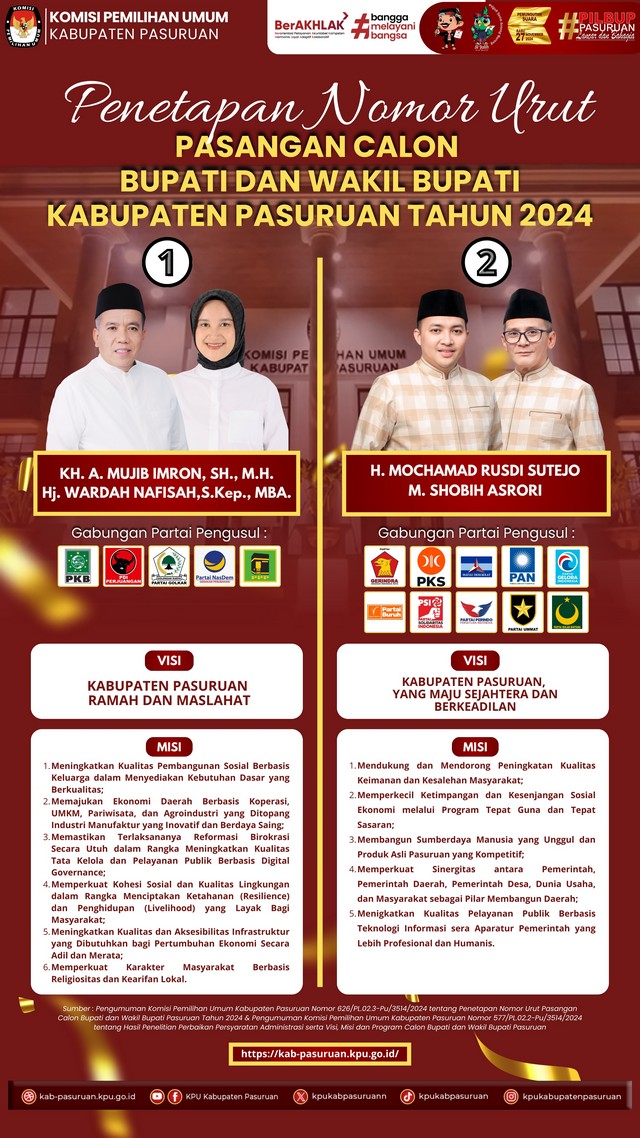 Kami mengajak Anda untuk bergabung dalam WhatsApp Channel KabarBaik.co. Melalui Channel Whatsapp ini, kami akan terus mengirimkan pesan rekomendasi berita-berita penting dan menarik. Mulai kriminalitas, politik, pemerintahan hingga update kabar seputar pertanian dan ketahanan pangan. Untuk dapat bergabung silakan klik di siniPenetapan Nomor Urut Pasangan Calon Bupati dan Wakil Bupati Kabupaten Pasuruan 2024
