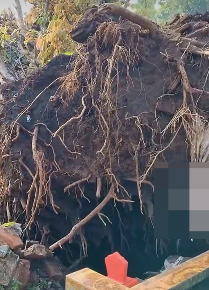 Berdasarkan tayangan di video yang beredar pada Selasa (31/3), sisa batang pohon beringin beserta akar yang roboh masih berada di area pemakaman. Sejumlah makam juga terlihat dalam kondisi terangkat, meski kain putih yang sempat terlihat dalam video viral sudah tidak tampak lagi.