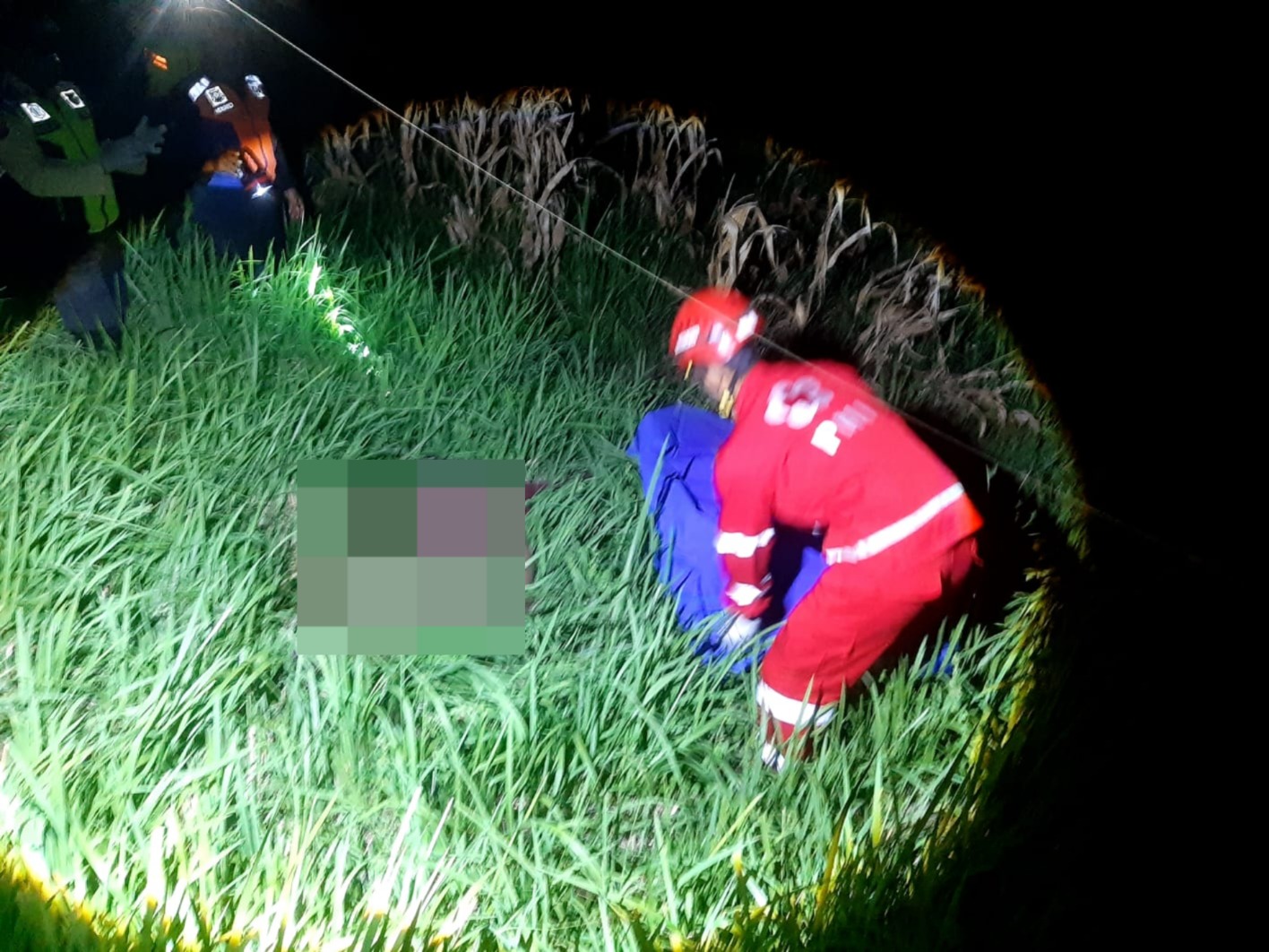 Petugas kepolisian bersama saksi segera mendatangi lokasi kejadian. Di tempat tersebut, korban ditemukan sudah dalam kondisi meninggal dunia di area persawahan di sisi utara rel kereta api.