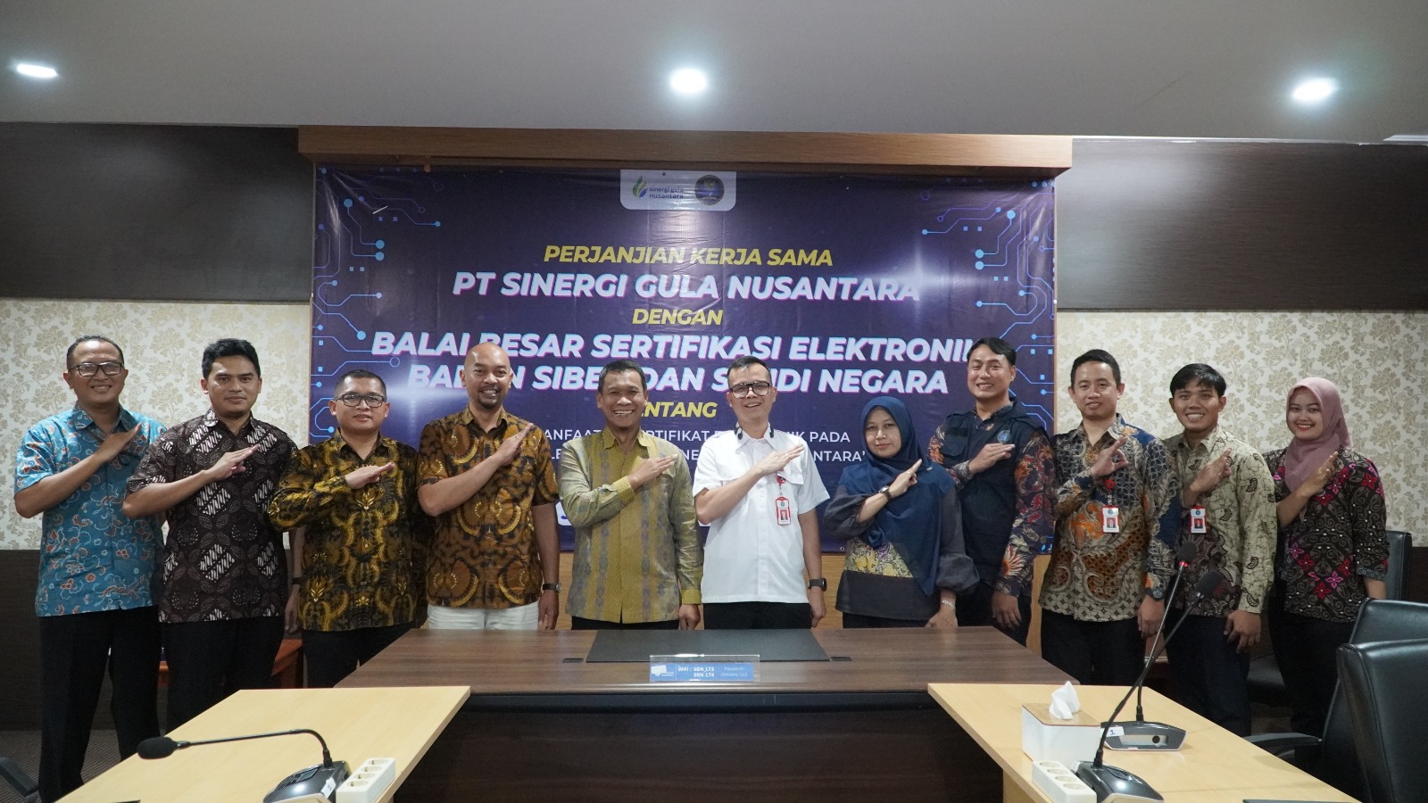 Foto : Direktur Utama PT Sinergi Gula Nusantara (tengah batik) bersama Kepala Balai Besar Sertifikasi Elektronik BSSN (tengah putih) di HO PT SGN Jakarta.(*)