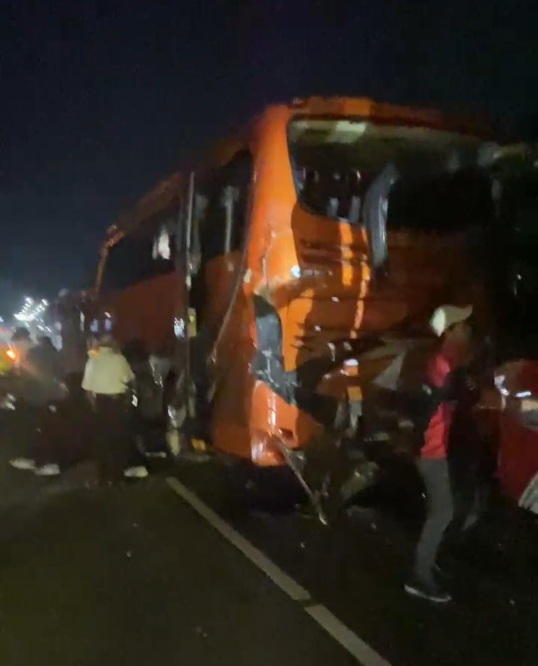 KabarBaik.co – Kecelakaan Beruntun yang melibatkan tiga bus dan satu mobil pribadi terjadi di tol Malang-Pandaan Km 66.600/B pada Selasa (8) 7) malam. Rombongan bus dari Malang menuju Surabaya itu rencananya akan pulang setalah berlibur di tempat wisata Santera di wilayah Kota Batu.