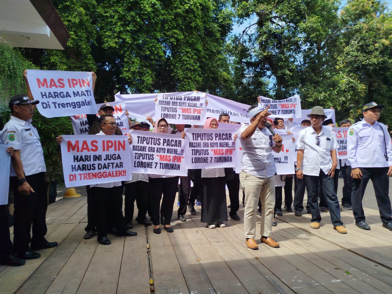 Aksi tersebut juga ditujukan untuk mengetuk hati Ketua Umum PDI Perjuangan, Megawati Soekarnoputri, agar mempertahankan Mas Ipin sebagai Bupati Trenggalek. “Mas Ipin harus tetap di Trenggalek dan menjadi bupati untuk periode 2024-2029,” tambahnya.