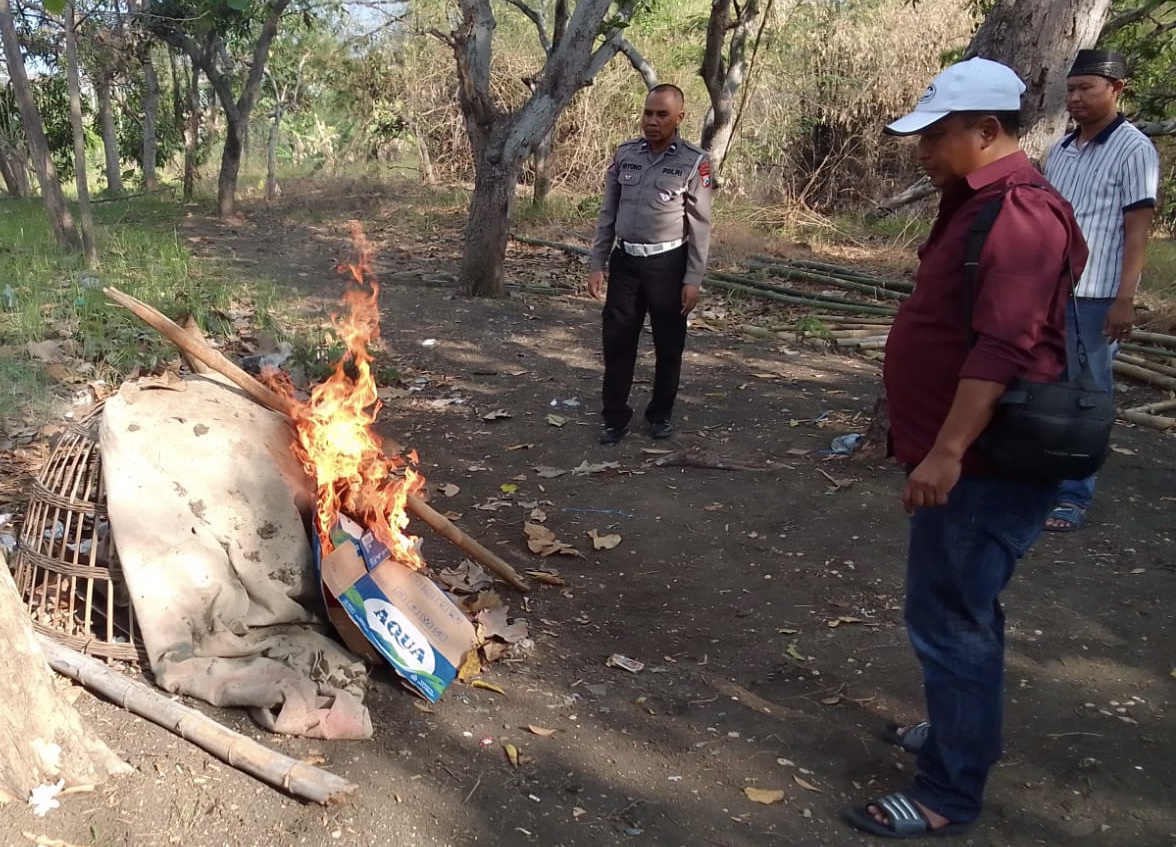 Meskipun tidak ada pelaku yang berhasil diamankan, petugas tetap mengambil tindakan tegas. Sejumlah barang bukti berupa terpal dan kurungan ayam yang digunakan dalam kegiatan sabung ayam langsung dimusnahkan dengan cara dibakar di tempat untuk mencegah kegiatan serupa terulang.