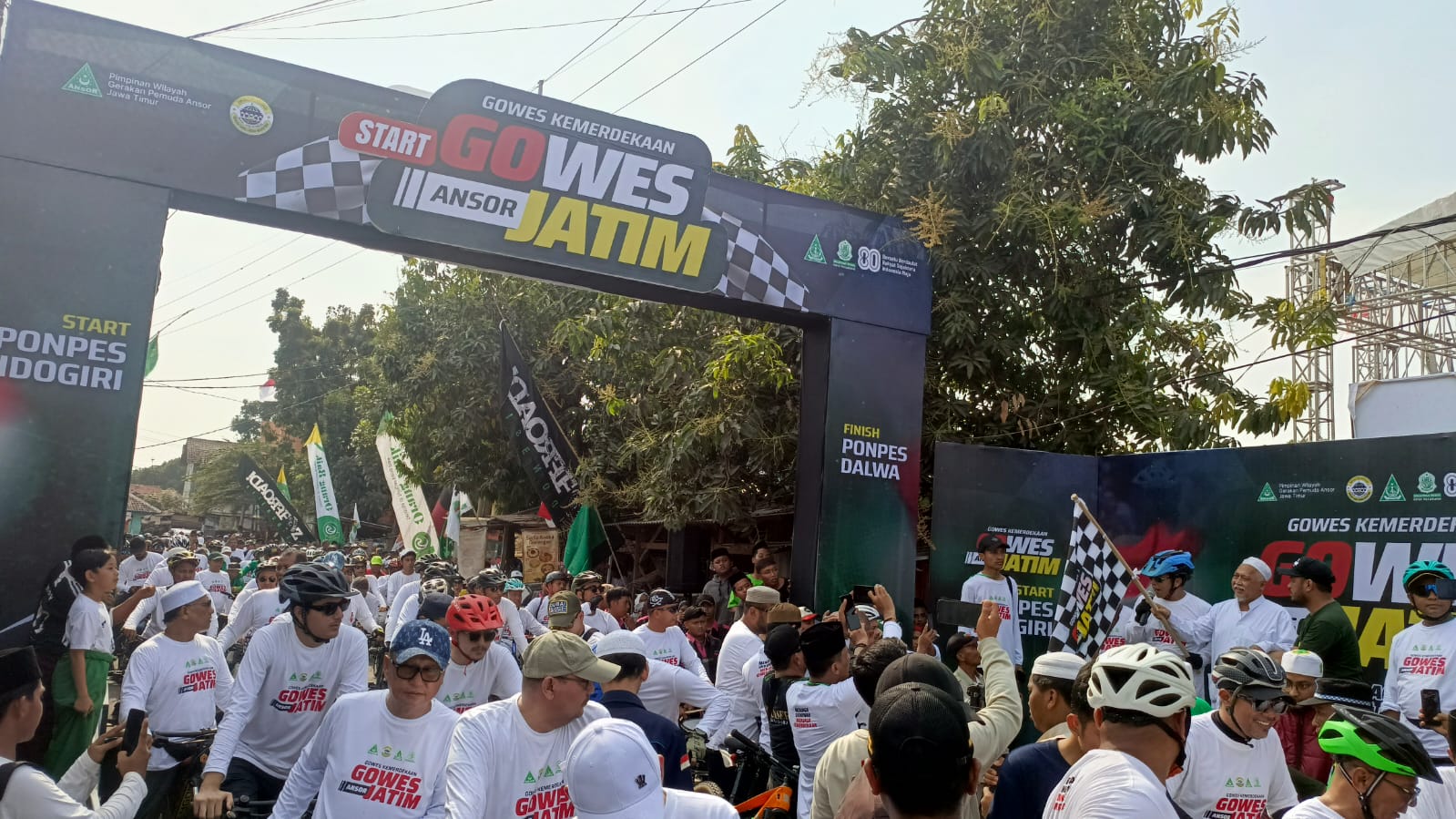 KabarBaik.co – Gerakan Pemuda (GP) Anshor Jawa Timur menggelar gowes kemerdekaan dalam rangka menyambut HUT Kemerdekaan RI ke-80. Kegiatan tersebut diikuti ribuan peserta dari berbagai kalangan, terutama dari pondok pesantren seperti kyai, masayik, serta para habaib di seluruh Jawa Timur.